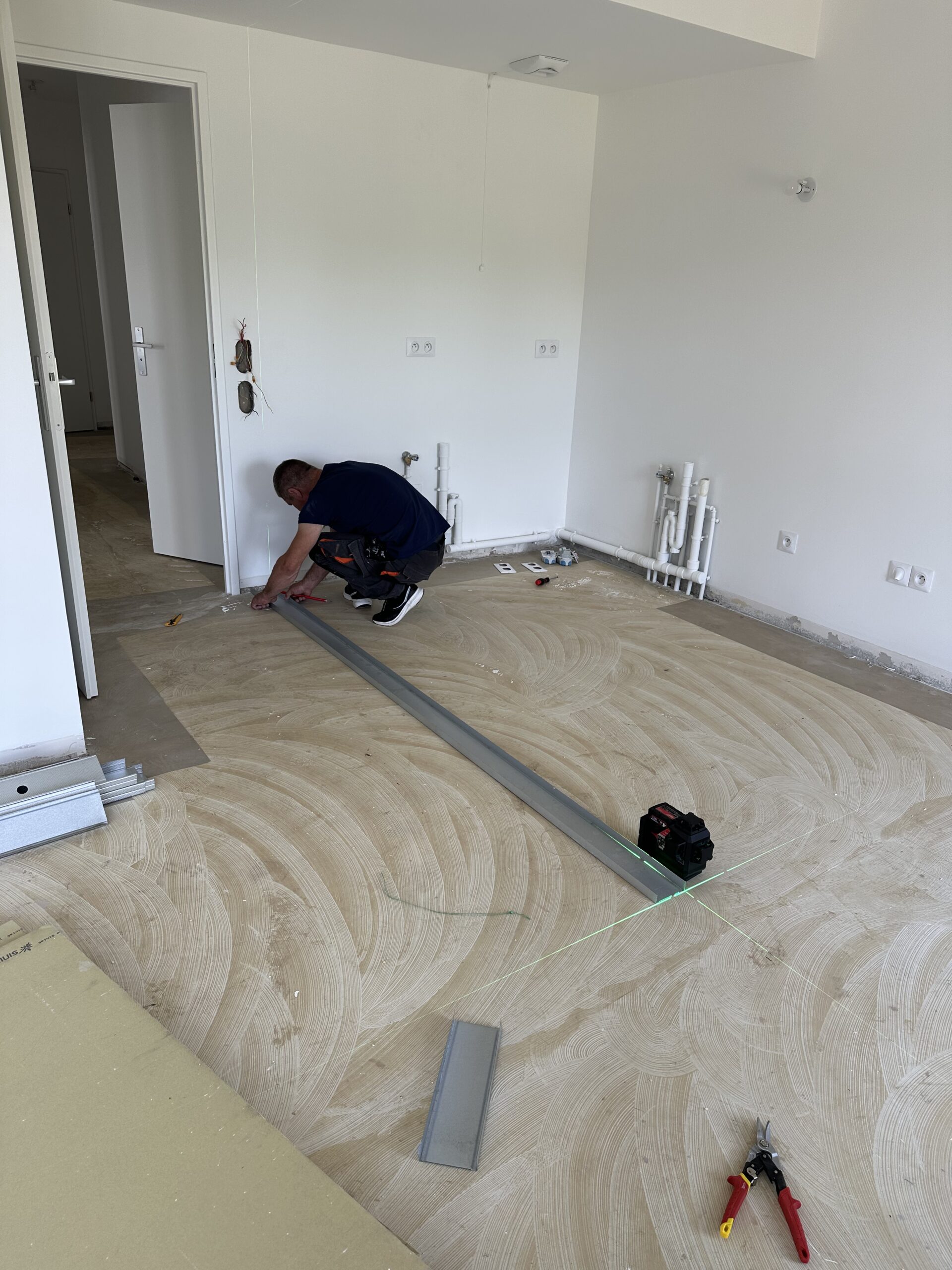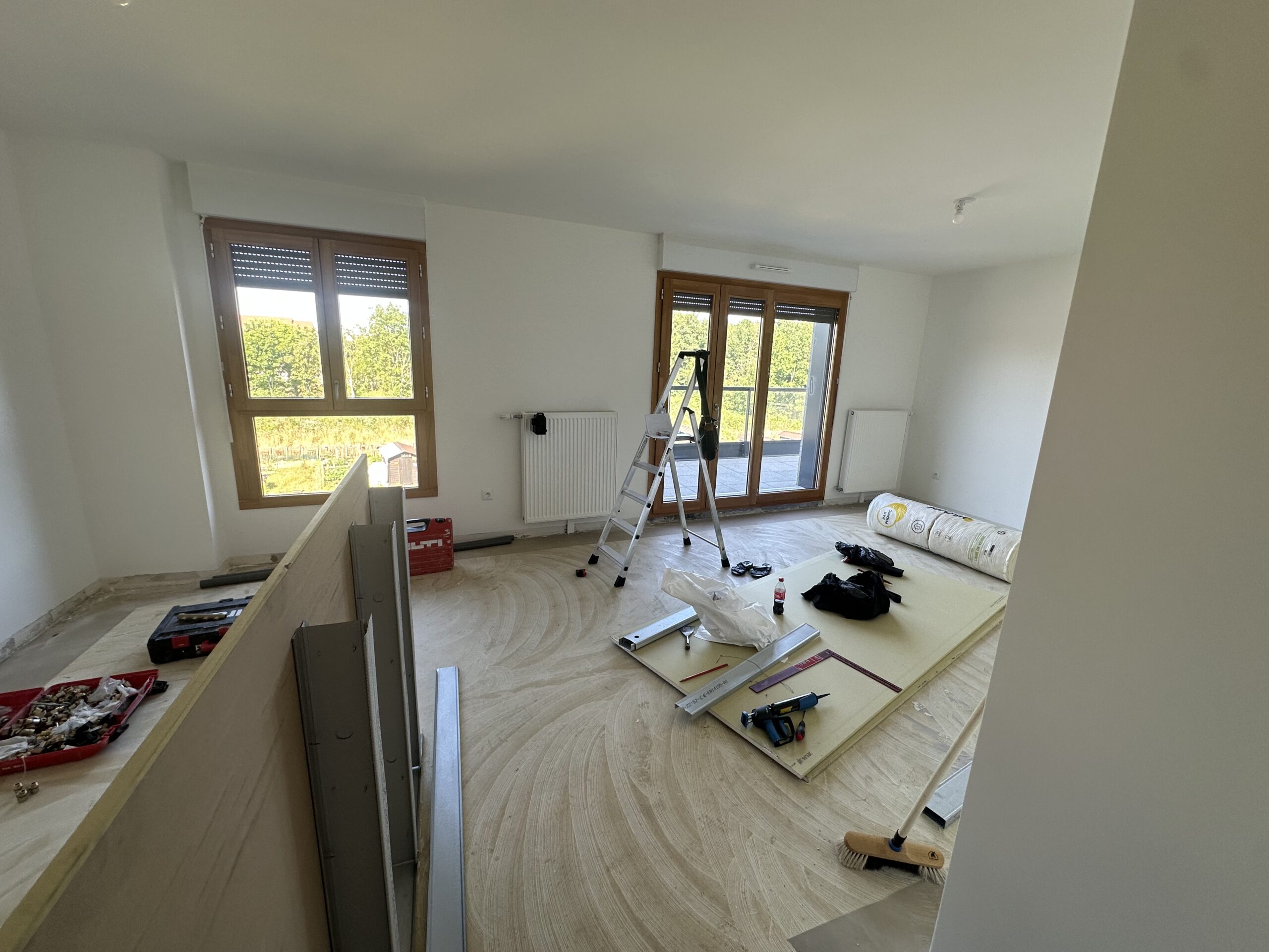 Les travaux ont concerné l’ensemble de l’appartement, avec une refonte totale des sols, des cloisons, de la plomberie et de l’électricité.