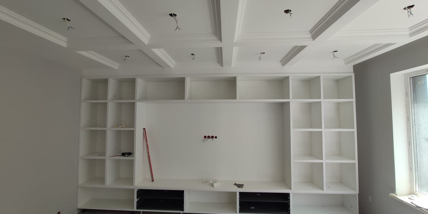 Fabrication de mobilier sur mesure : meuble TV intégré, bibliothèque murale, placards encastrés
