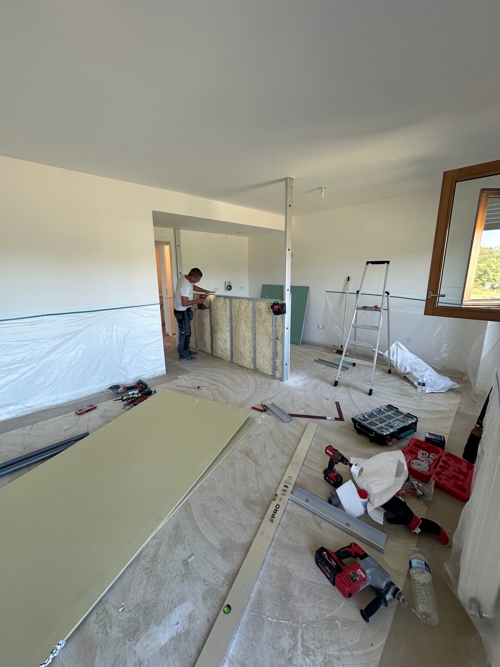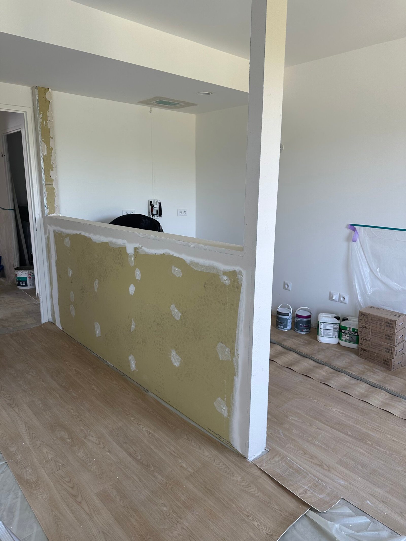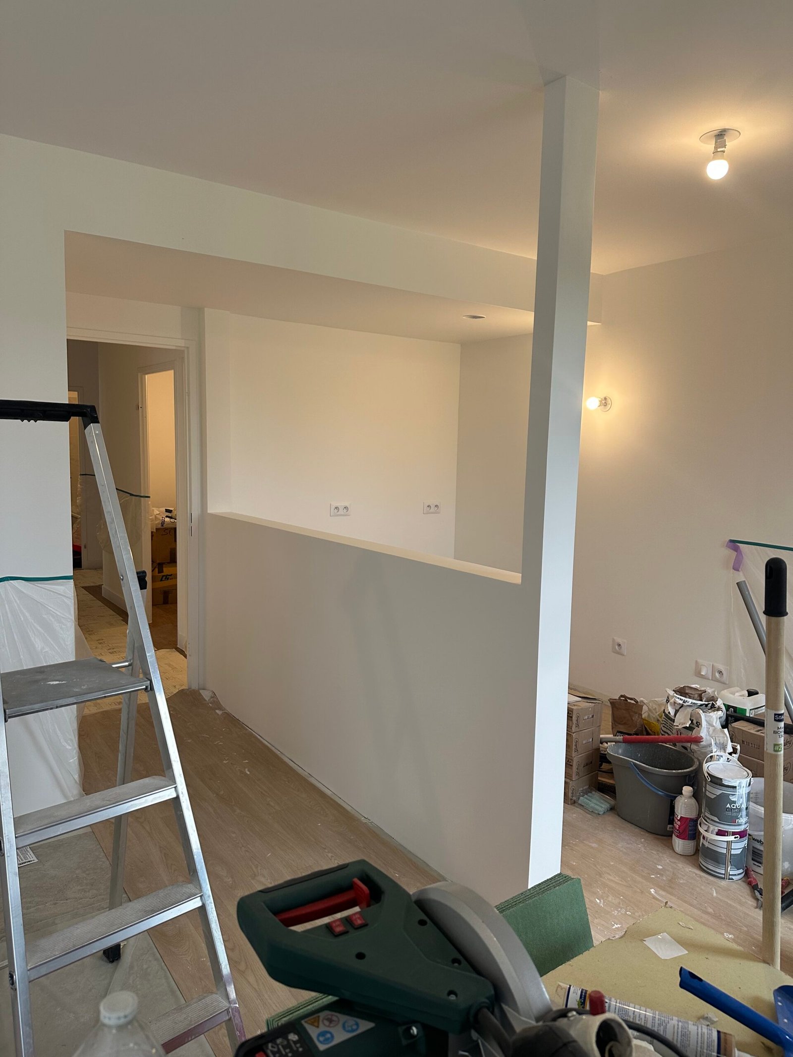 Les travaux ont concerné l’ensemble de l’appartement, avec une refonte totale des sols, des cloisons, de la plomberie et de l’électricité.