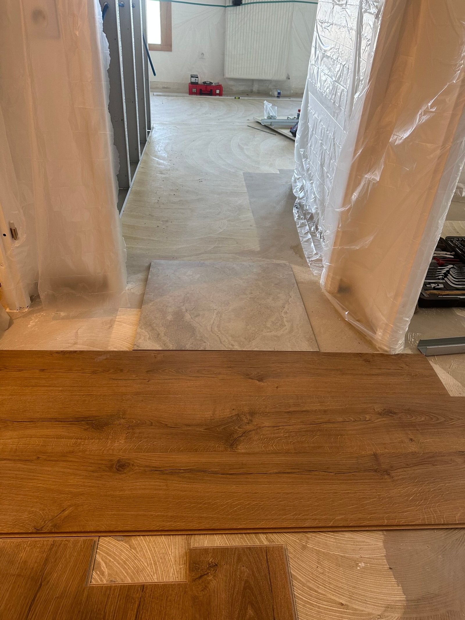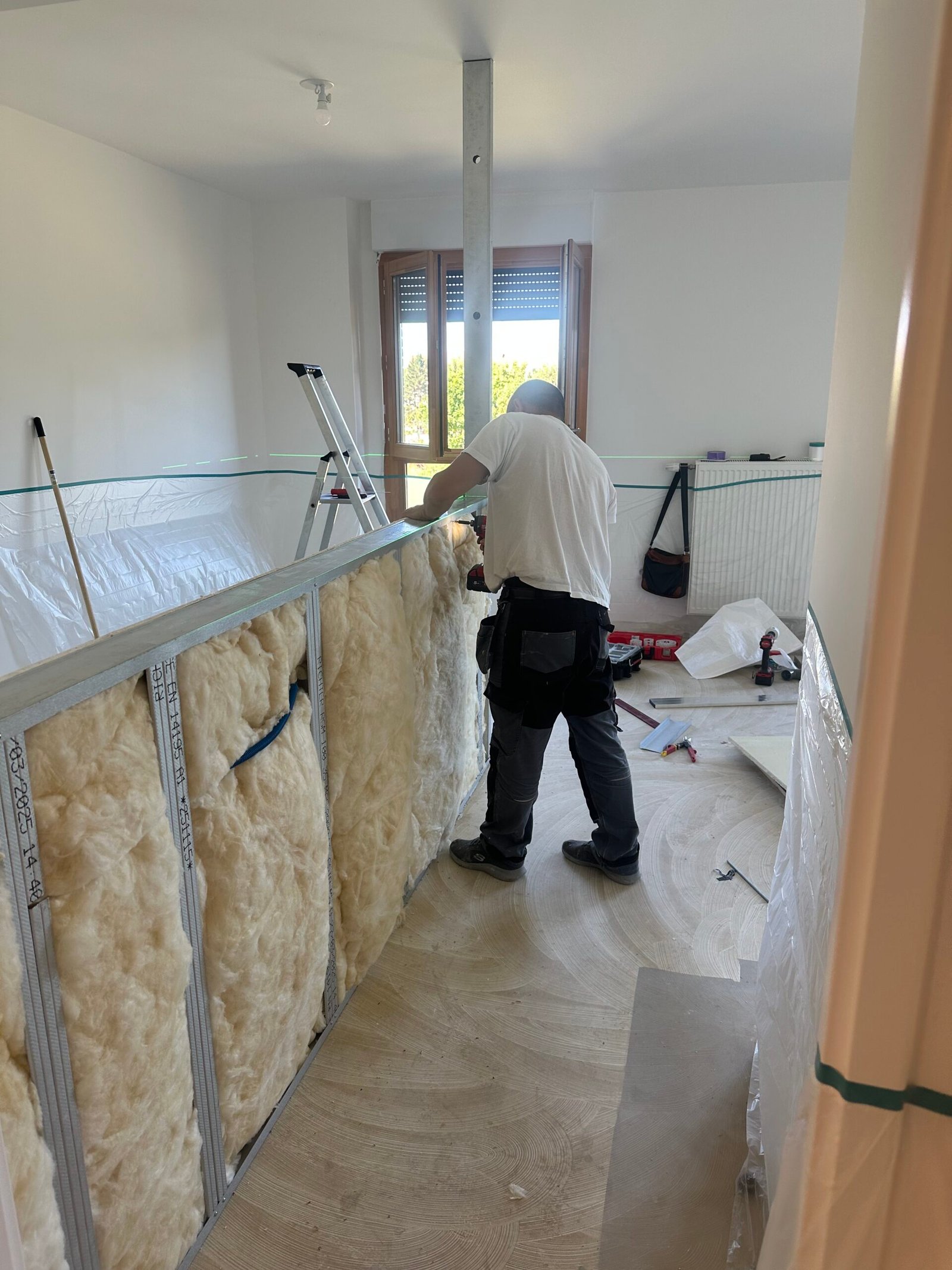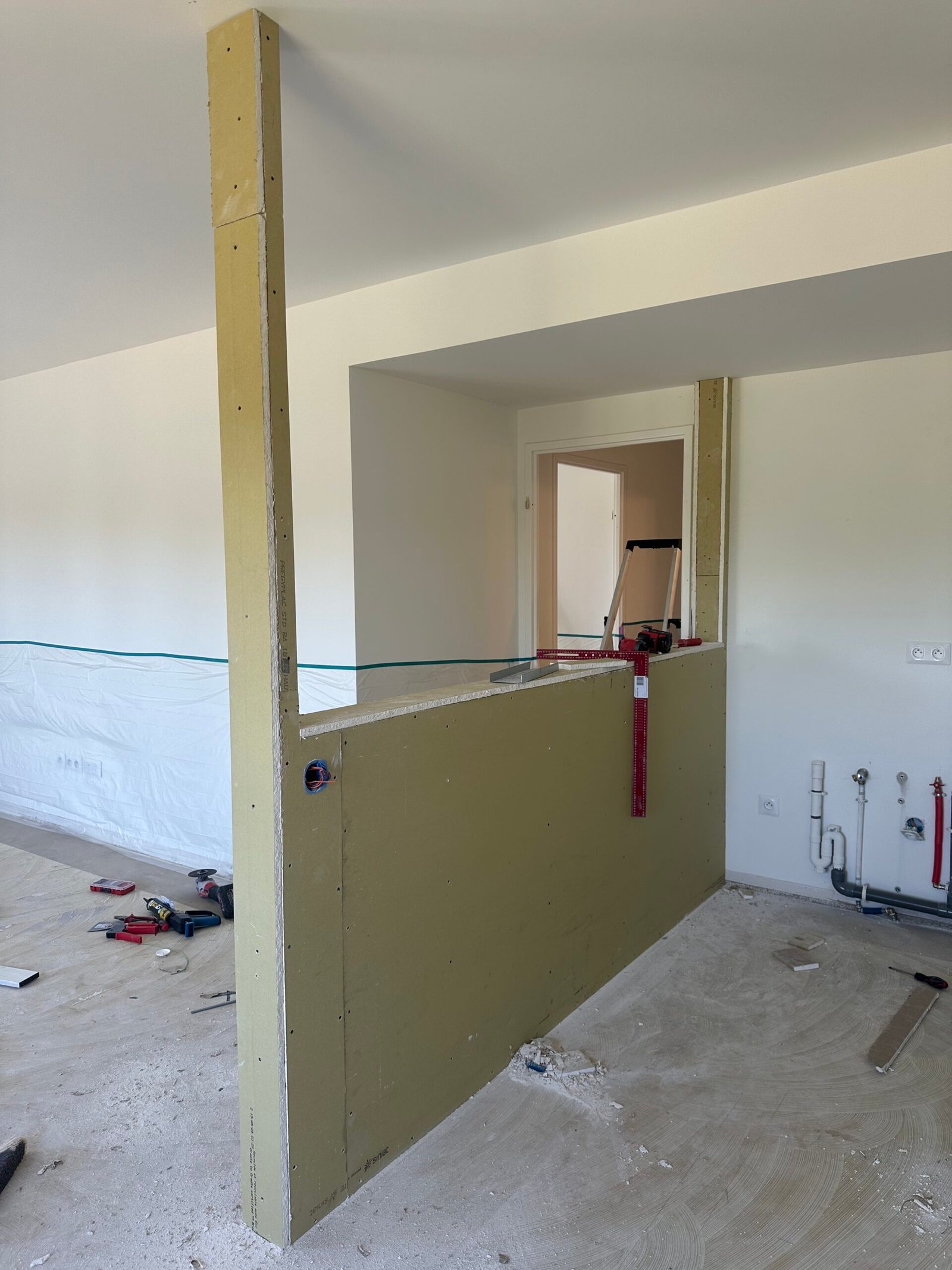 Les travaux ont concerné l’ensemble de l’appartement, avec une refonte totale des sols, des cloisons, de la plomberie et de l’électricité.